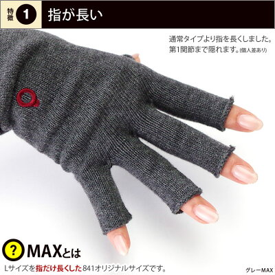 ・「MAX」とは?ハンドウォーマーLサイズの指だけを長くした、当店オリジナルのサイズです。