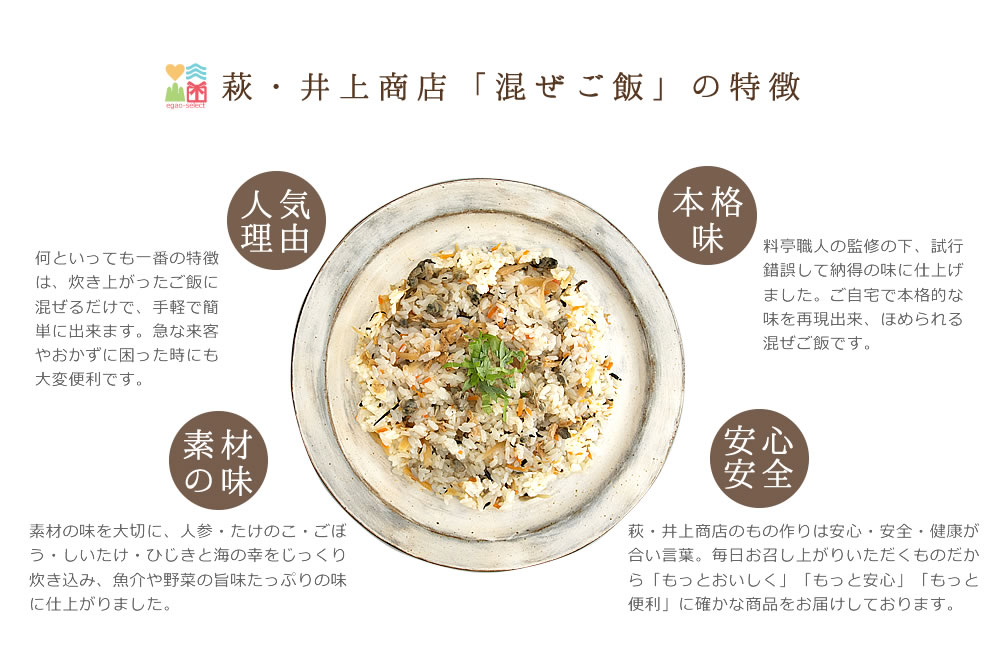大自然の中で育ったお米や、ふりかけ、活きエビ、かまぼこ、しょうゆ、萩焼などをはじめ、送料無料やお試しセット・ご贈答用など取り揃えております。