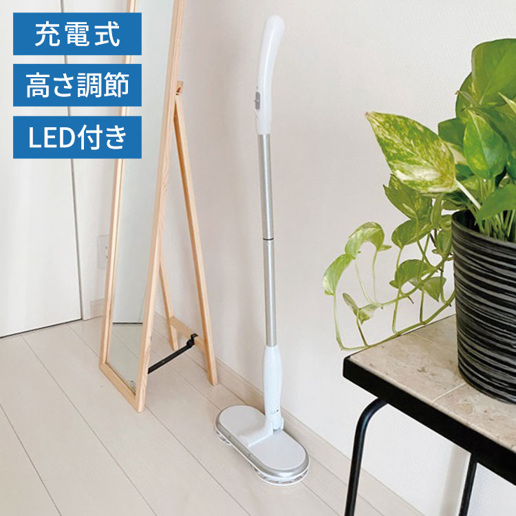 【商品情報】充電器入力:AC100V 50/60Hz、出力:DC9.0V/500mA充電方式:リチウムイオンバッテリー 7.4V充電時間:約3.5時間連続運転時間:約60分(モップパッド乾燥時)モップパッド直径:約16cm外形寸法:幅290×奥行135×高さ1040mm(本体のみ)質量:1.0kg(充電式バッテリー含む)ACアダプターコード長:約1.5m付属品:ACアダプター、モップパッド(2枚)モップパッド材質:ポリエステル 90%、ナイロン 10%※こちらの商品は人気商品の為、たくさんの方へお送りできるよう簡易包装となりますのでご了承下さい。